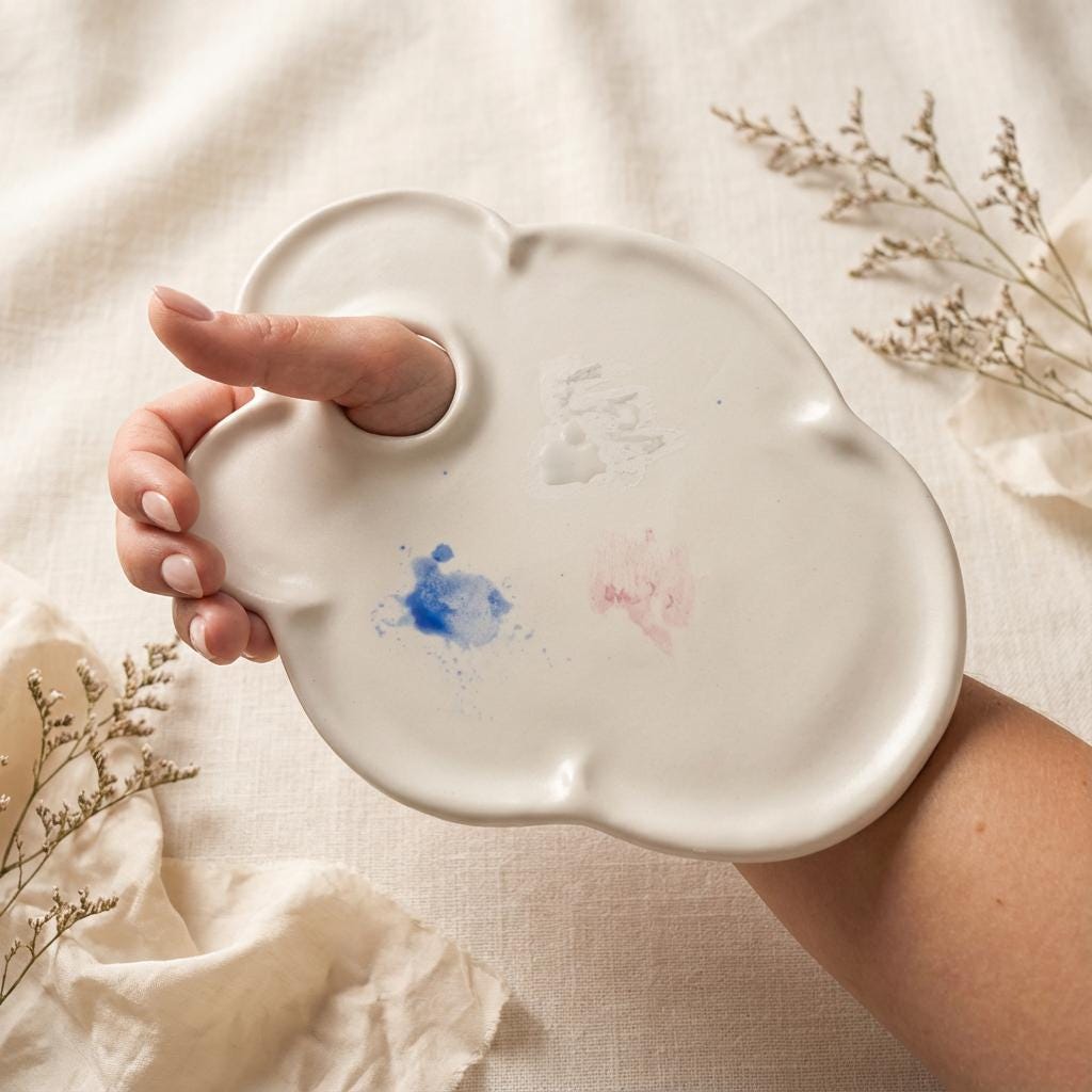 Ideal for watercolor, gouache, acrylic, and other paint types, this compact palette is especially suited to small studios, travel kits, and artists who prefer petite, thoughtfully designed tools. Its organic cloud form adds a quiet sense of joy without sacrificing function, making it equally appropriate for daily use or gifting.